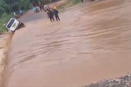 The moment a Probox was swept away as the driver attempted to drive through a flooded river in Makueni (VIDEO)