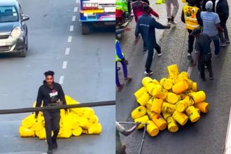Eric Omondi walks with empty jerrycans in protest of high fuel prices