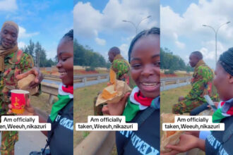 VIDEO of a LADY shooting her shot at a police officer during protests along Thika Road – He gave her tea, bread, and an egg