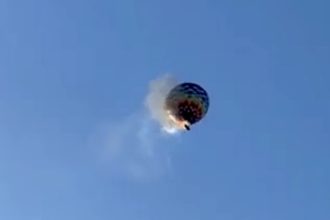 A hot-air balloon caught fire and fell from the sky…