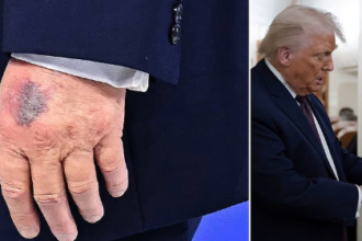 President Trump sparks health concern as huge bruise is spotted on his hand as he delivers speech in Davos