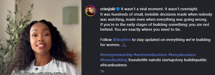 “I started Ikojn with 200 shillings, yeah, no one wants to talk about that,” Cris Njoki said.