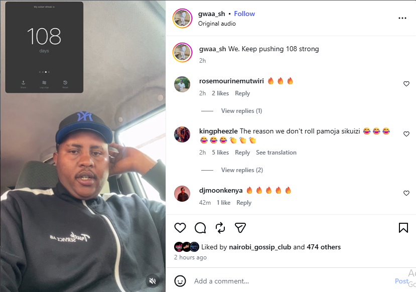 “Ni 108 days tangu niwache chingri… na nimelearn vitu kadhaa,” he said, marking what he described as a personal reset.
