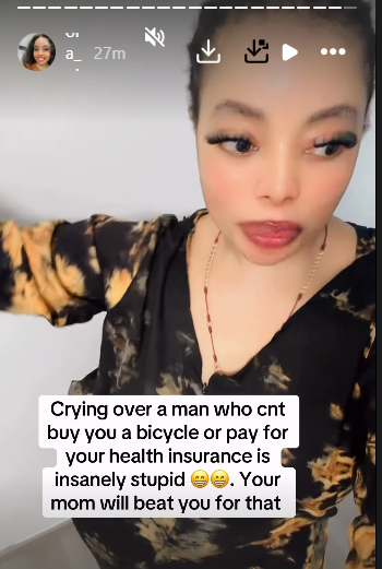 She also said crying over a man who cannot buy you a bicycle is the same.