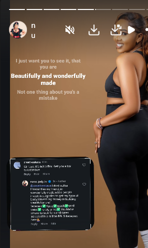 The exchange came after a post where she shared her thoughts on confidence and her personal journey. She made it clear she is not affected by body-shaming remarks.