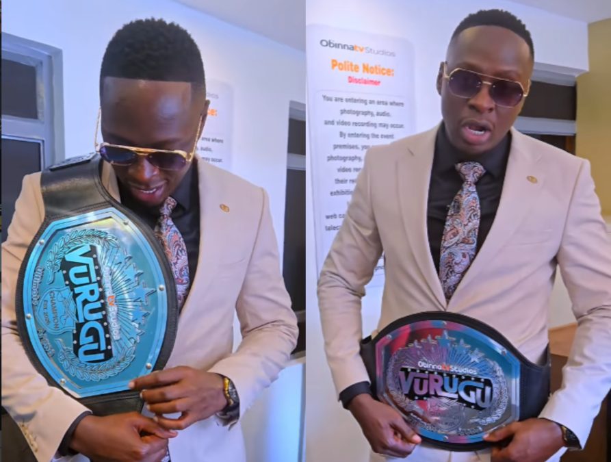 Oga Obinna holding Vurugu’s belt. PHOTO/@ogaobinna/Instagram