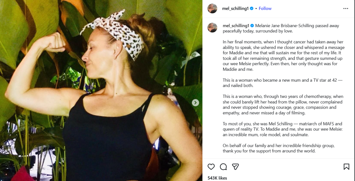 “To most of you, she was Mel Schilling, matriarch of MAFS and queen of reality TV. To Maddie and me, she was our wee Melsie: an incredible mum, role model, and soulmate. On behalf of our family and her incredible friendship group, thank you for the support from around the world. I also want to thank our wonderful MAFS family — John, Alessandra, Charlene, Roxy, and Sophie — for your kindness and compassion. To Lee, Louie, Susy, and Ian at Channel 4 / CPL, who went above and beyond for us, we will never forget it,” Gareth wrote.