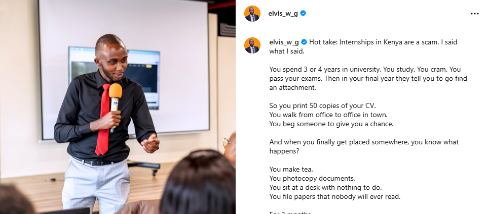 In his post, Elvis called for a complete overhaul of the system. He said internships should provide real projects, practical experience, and accountability from host companies.